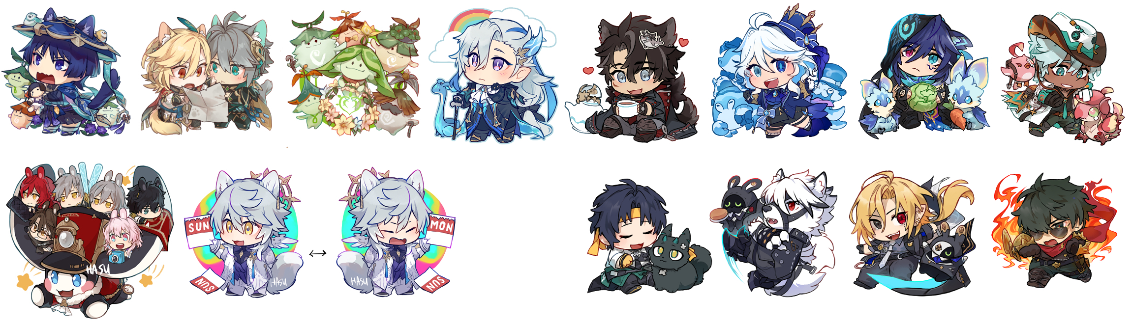 2-inch double-sided acrylic keychains, except for Pom-pom which is 2.5"